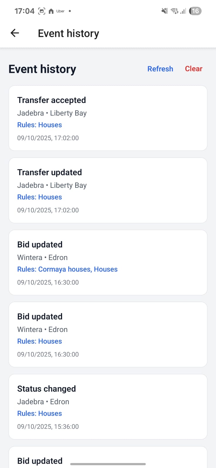 Configure rules for auctions, rentals, abandonments, transfers, and more—all from your phone.